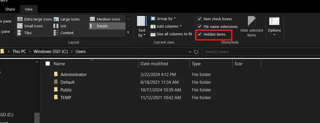 Windows Users用户目录下看不到自己当前用户文件夹[1]