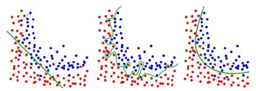 欠拟合:模型不能适配训练样本,有一个很大的偏差,但方差比较小。比如,我们有一个本质上是多项式的连续非线性数据,但模型只能表示线性关系。在此情况下,我们向模型提供多少数据不重要,因为模型根本无法表示数据的基本关系,模型不能适配训练样本,有一个很大的偏差,因此我们需要更复杂的模型。那么,是不是模型越复杂拟合程度越高越好呢?也不是,因为还有方差。