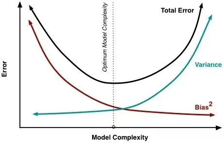 一般来说,简单的模型会有一个较大的偏差和较小的方差,复杂的模型偏差较小方差较大。