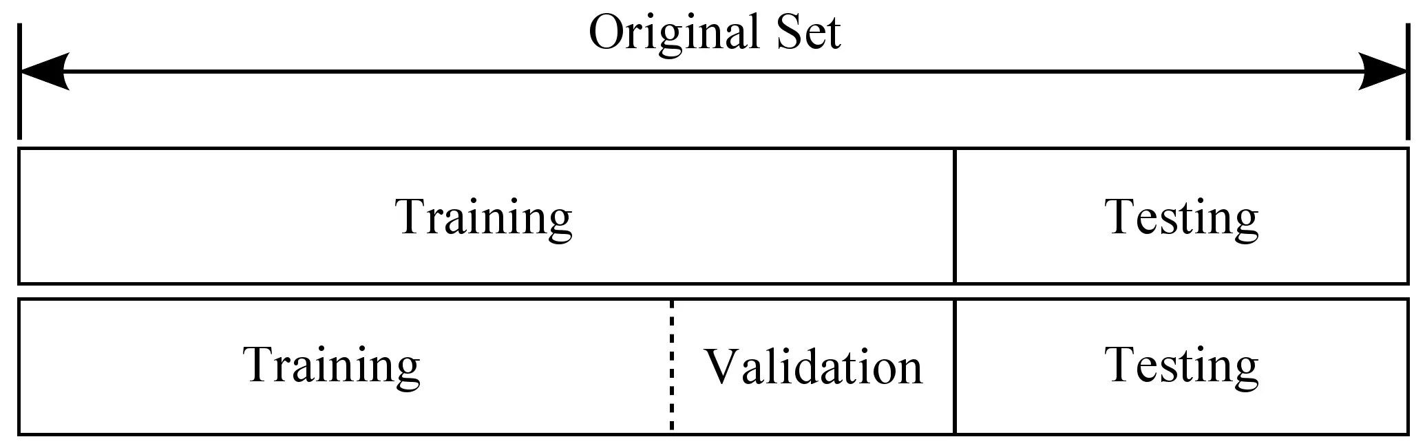 在有监督(supervised)的机器学习中,数据集常被分成2~3个,即:训练集(train set),验证集(validation set),测试集(test set)。