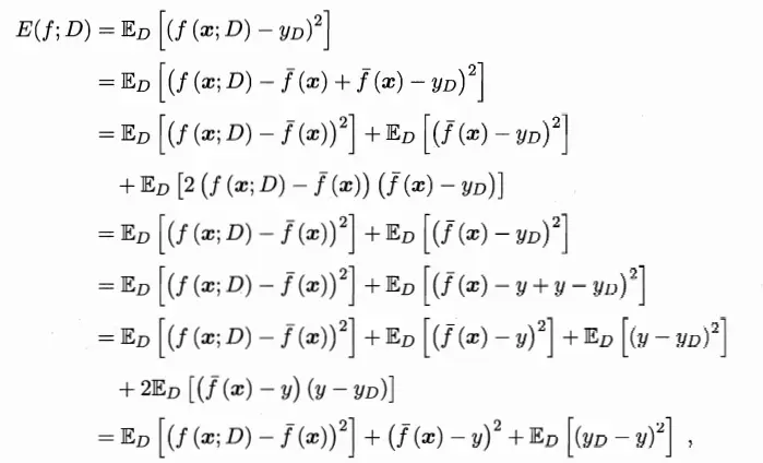 泛化误差可以通过数学上的变换[4]将其分解为偏差(Bias)、方差(Variance)和噪声(Noise)。